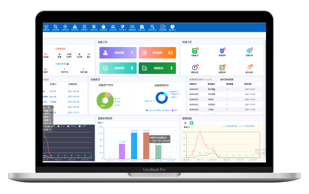 建立以设备为中心的企业数据中心。实现了设备,物资,备件的数据关联,实现管理,运维,生产,仓管,采购,财务等多角色的无缝衔接,流程对接