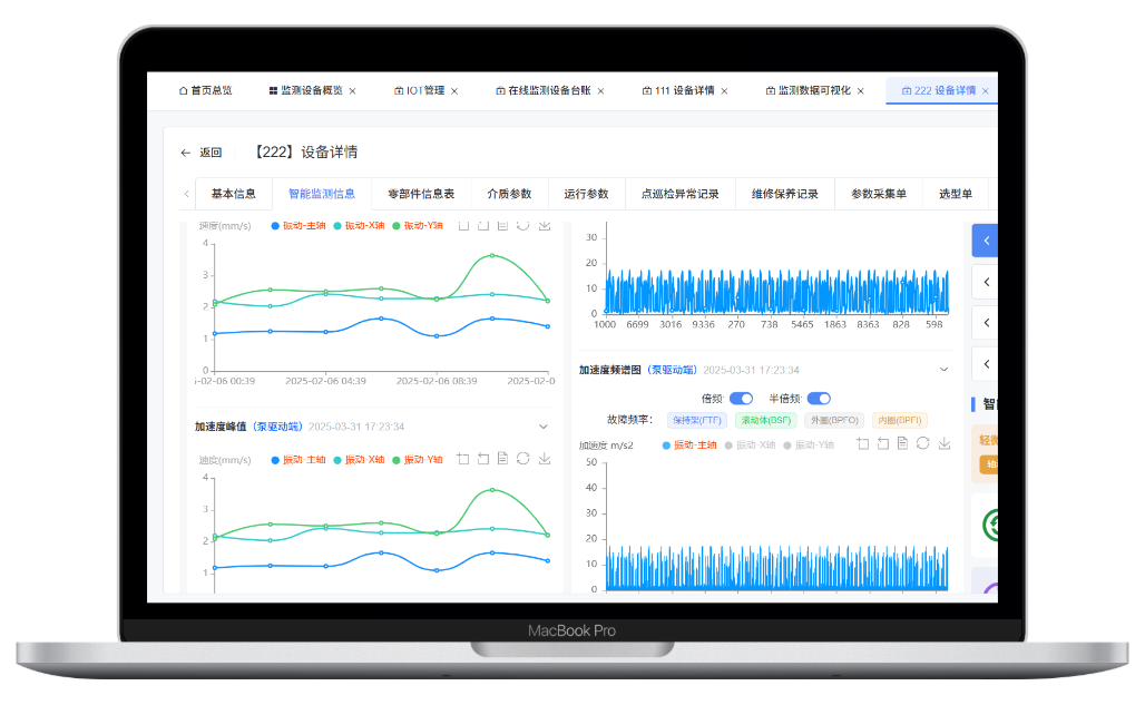 从多个维度对采集数据的统计与分析,通过特定算法进行频谱分析,如振动频率,振动幅值变化趋势等