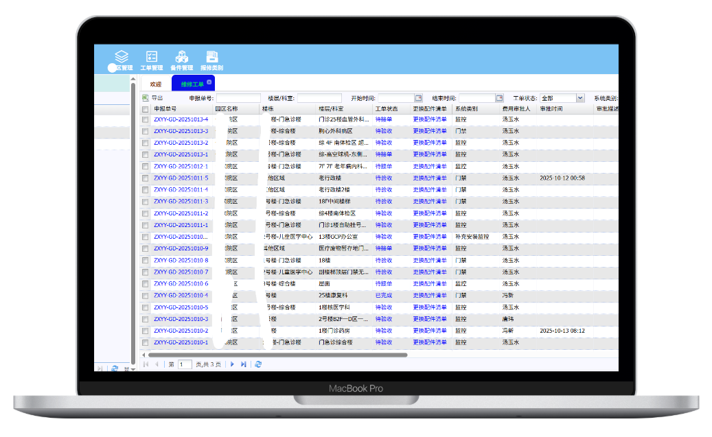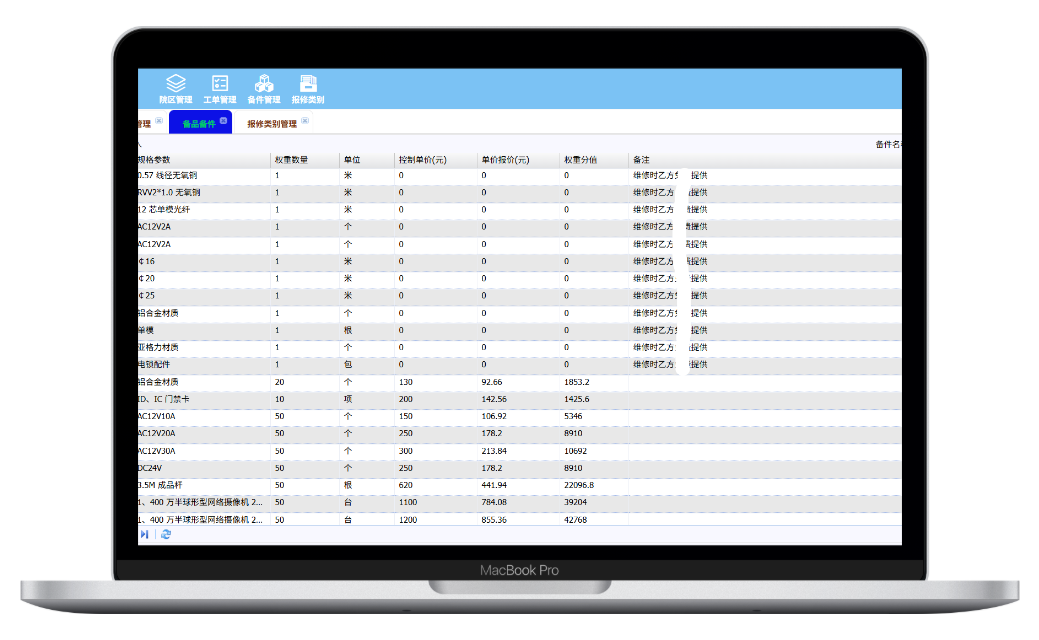 当需要更换备件或者设备时候,需要提报申请,审批等环节,效率低下,计算困难