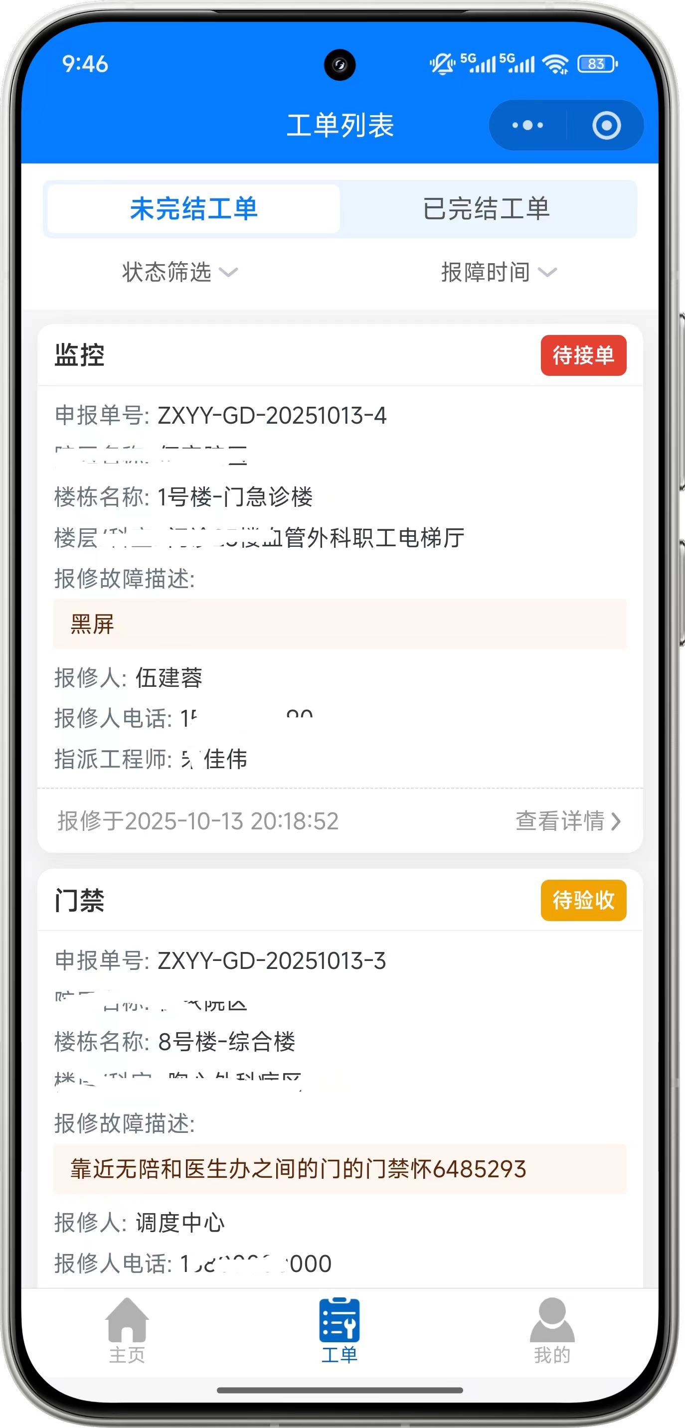 手工记录,通过微信,电话等方式通知维修人员,效率低下,等不到反馈